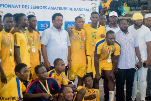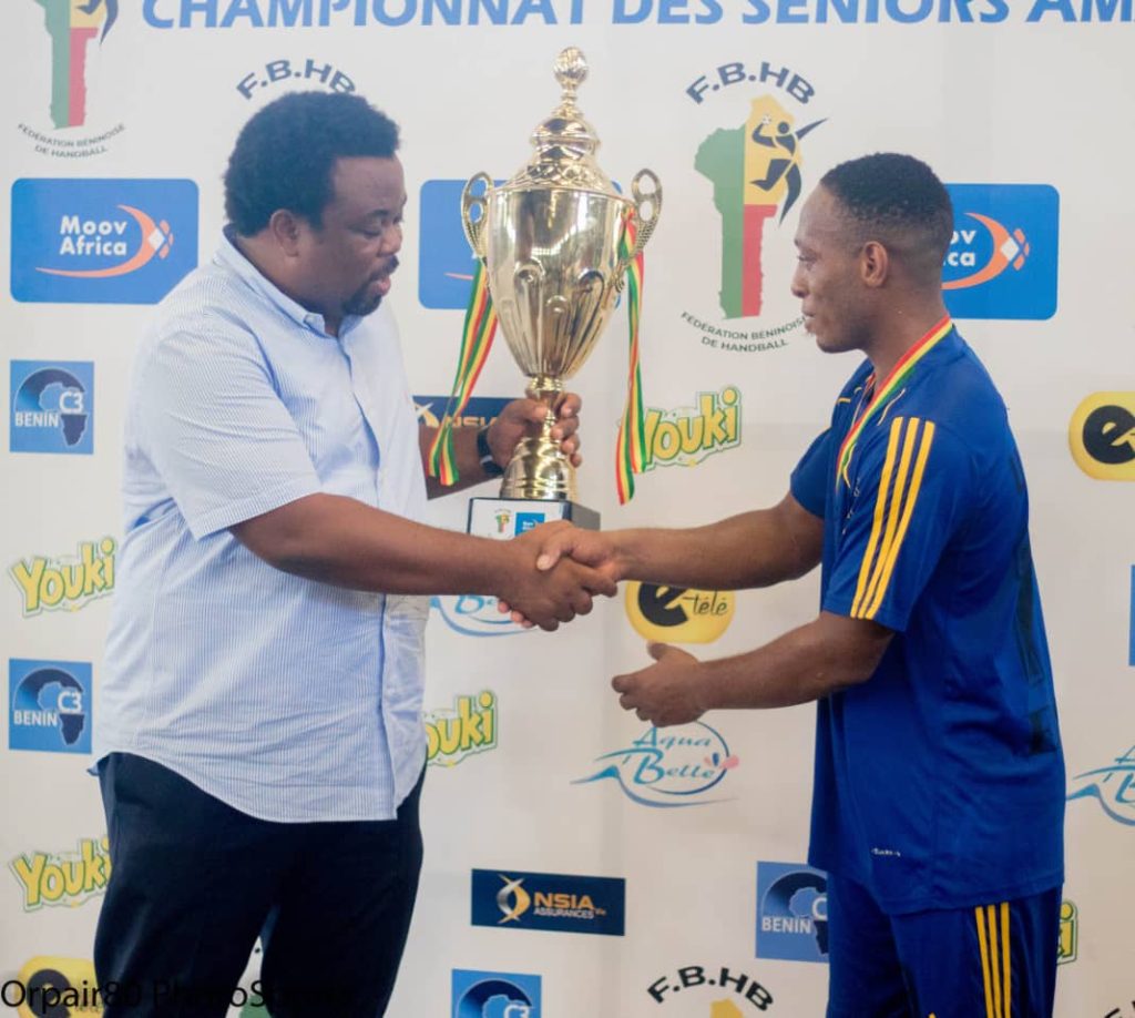 ISSIFOU Karim et ses poulains ont terminé avec la médaille d’or au terme de ce championnat amateurs seniors Moov Africa de Handball. Devant le président de la Confédération Africaine de Handball (CAHB), Aremou MANSOUROU , Fédération Béninoise de Handball (FBHB), Sidikou KARIMOU, et le président sortant de la FBHB, Antoine BONOU, l’UAC HBC a battu ASSEC de Djougou sur un score de 33-30. En plus du titre du meilleur joueur de la finale remportée par Cyrille Adebayor LAFOULOU, capitaine de UAC HBC, voici le tableau des distinctions individuelles