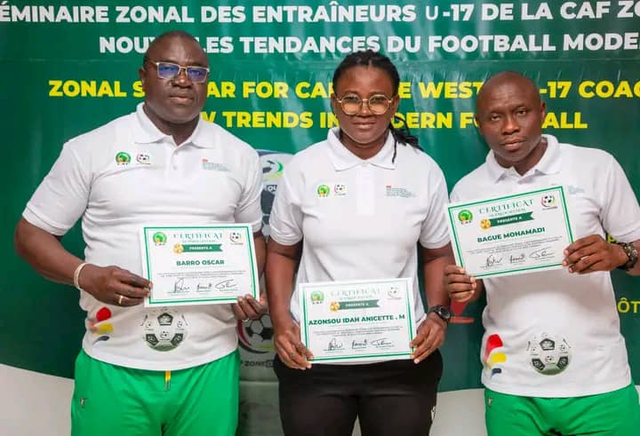 Le Bénin a été dignement représenté lors de cette session. Les sélectionneurs Ida Azonsou (U17 féminine) et Ibrahim Da Silva (U17 masculine) ont pris part activement aux travaux, affichant sérieux et implication tout au long des quatre jours d’activité. Tous deux ont reçu leur parchemin, preuve de leur engagement dans la quête d’excellence.