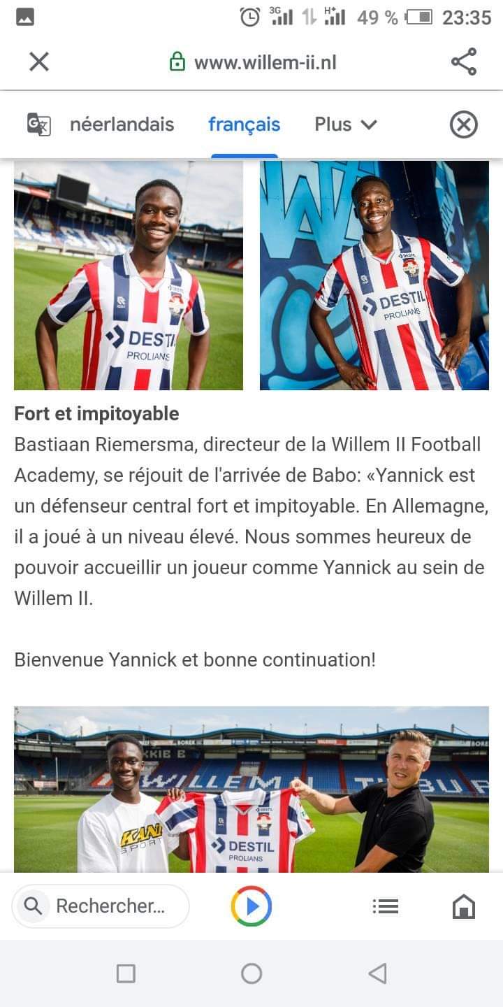 Bastiaan Riemersma , directeur de la willem ll football Academy,se réjouit de l’arrivée de Babo %yannick est un défenseur central (latéral droit de formation) fort et impitoyable..%.En Allemagne,il a joué à un niveau élevé. nous sommes heureux de pouvoir accueillir un joueur comme Yannick au sein de Willem ll.