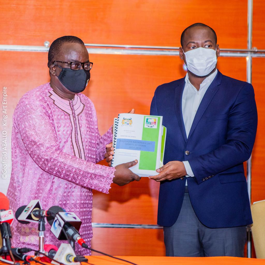 Suivre, élaboré et actualisé la politique Nationale des Sports et des Loisirs, des chartes nationales des sports et des loisirs et du projet de lois sur le financement des sports tel est l’objectif du ministre des sports Oswald Homeky en procédant à l’installation le 7 Juillet 2020 par note de service n° 051/MSP/DC/SGM/DPP/SA du 12 juin 2020, du comité technique de suivi présidé par Julien Minavoa, Président du Comité National Olympique et Sportif béninois(Cnos-ben). Composé de onze membres connaissant et maitrisant les problèmes du sport béninois, ils ont procédé à l’élaboration d’une feuille de route capable de leur permettre de réussir la mission a leur assignée par l’autorité. Ainsi, de stratégies en stratégies, et pendant 90 jours comme le stipule leur lettre de mission, les membres du comité technique de suivi sont parvenus après plusieurs séances de travail effectuées par le comité respectivement le 6/08/2020 sur le document de politique nationale des Sports , et le 11/08/2020 sur le document de politique Nationale des loisirs puis un atelier de finalisation de l’ensemble des documents du 9 au 12mars 2021 a finalisé les différents rapports d’activités. Ainsi, procédant à la remise desdits documents, Julien Minavoa s’est dit heureux de la confiance que le ministre des sports a placé aux membres de sa commission pour procéder à ce travail qui engage la vie et l’ensemble du sport béninois. En effet, avant la remise officielle des documents au ministre Oswald Homeky, Victor Lawin rapporteur du comité, a procédé à une brève présentation du contenus des différents documents. De ces explications, il ressort que le nouveau projet de la Charte des sports a été élaboré et conçu pour encadrer deux axes principaux de la pratique sportive que sont : Le sport pour tous qui vise le bien-être et le sport de compétition qui est régi par la recherche de performance. Pour le ministre des sports, le Bénin vient de franchir un cap dans le domaine du sport ‘’ depuis 2016, nous pouvons considérer que le sport béninois a commencé à faire des pas, ce que nous faisons ce jour est historique. Dans le domaine des infrastructures, nous avons engagés un programme ambitieux. Dans celui des réformes, nous avons effectué le diagnostic nécessaire et décidé de faire tout ce qui est important pour que le sport béninois se positionne à la hauteur de nos ambitions. Dans le domaine de l’organisation, nous avons vu avec vous qu’ensemble et qu’avec les mêmes personnes que nous pouvons réussir. C’est pour cela que l’acte que nous posons aujourd’hui est pour moi un pas majeur dans la consolidation définitive des bonnes pratiques dans ce secteur’’ a indiqué Oswald Homeky qui n’a pas manqué de saluer l’ensemble des membres du comité technique de suivi qui se sont sacrifié pour que nous ayons ces documents importants pour le sport béninois. Signalons que ces documents seront transmis au gouvernement du président Patrice Talon pour amendement puis à la représentation nationale qui procèdera au vote des lois et décrets statuant sur les politiques nationales des sports et loisirs en République du Bénin.