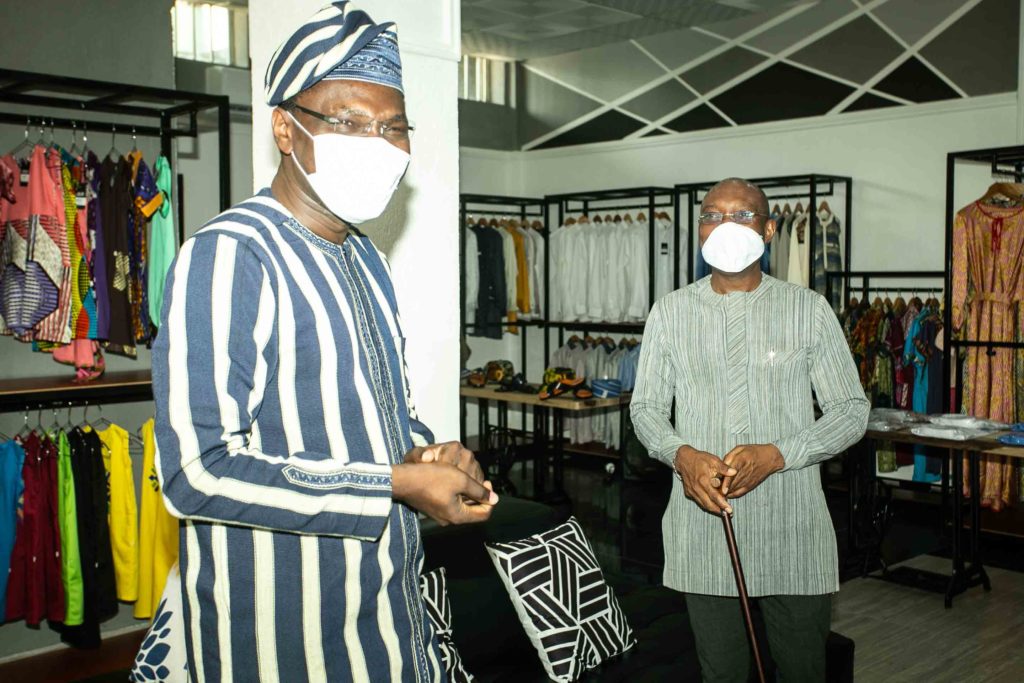 Le président de la cour constitutionnelle du Bénin, Joseph Djogbénou a effectué ce mardi 17 Août 2020, une visite dans les locaux de Lolo Andoche. Du Showroom situé sur le boulevard Steimetz à l’atelier de création en passant par la boutique Kanvi, le président Djogbénou a salué le travail énorme du créateur de mode.