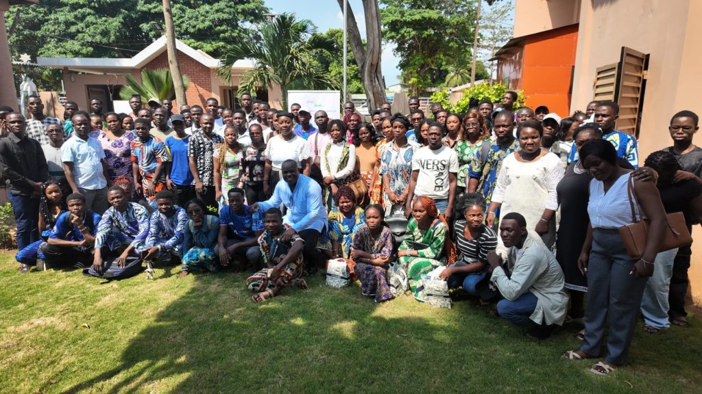 Avant de se retrouver en groupes de formation selon leurs missions, tous les volontaires ont assisté à une présentation de l’AnpE. Afia Ahokpe, conseillère en emploi, a exposé l’offre de services de l’agence à travers son cœur de métier, l’intermédiation entre l’offre et la demande d’emploi, ainsi que les mesures actives sur le marché du travail et les programmes d’accompagnement tels que le Programme d’Appui à l’Emploi Indépendant (PAEI), le Programme de Perfectionnement et de Reconversion (P2RDE), le Partenariat Décentralisé pour l’Emploi (PaDE), le Programme Spécial d’Insertion dans l’Emploi (PSIE), Azôli destiné aux jeunes peu ou pas instruits, le Programme Spécial de Pré-insertion dans l’Emploi (PSPIE) et le Projet Talents Africains à l’International (TAI). Elle a précisé que le volontariat fait partie intégrante de cette offre. Colombe Doyigbé, Directrice des Ressources Humaines en charge du volontariat, a présenté aux cent volontaires le concept du volontariat. Elle a été appuyée par Frédérick Tsatsu, Volontaire de Solidarité Internationale et Chargé de mission du Programme Innovant de Volontariat à l’AnpE, qui a développé auprès des jeunes la déontologie du volontariat. Ils ont insisté sur la distinction entre volontariat et bénévolat. Ils ont mis en avant les valeurs fondatrices du volontariat, tout en soulignant la diversité des motivations des volontaires. Enfin, ils ont rappelé les droits dont bénéficient les volontaires, en précisant que ces éléments font du volontariat un véritable levier d’insertion sociale et professionnelle.
