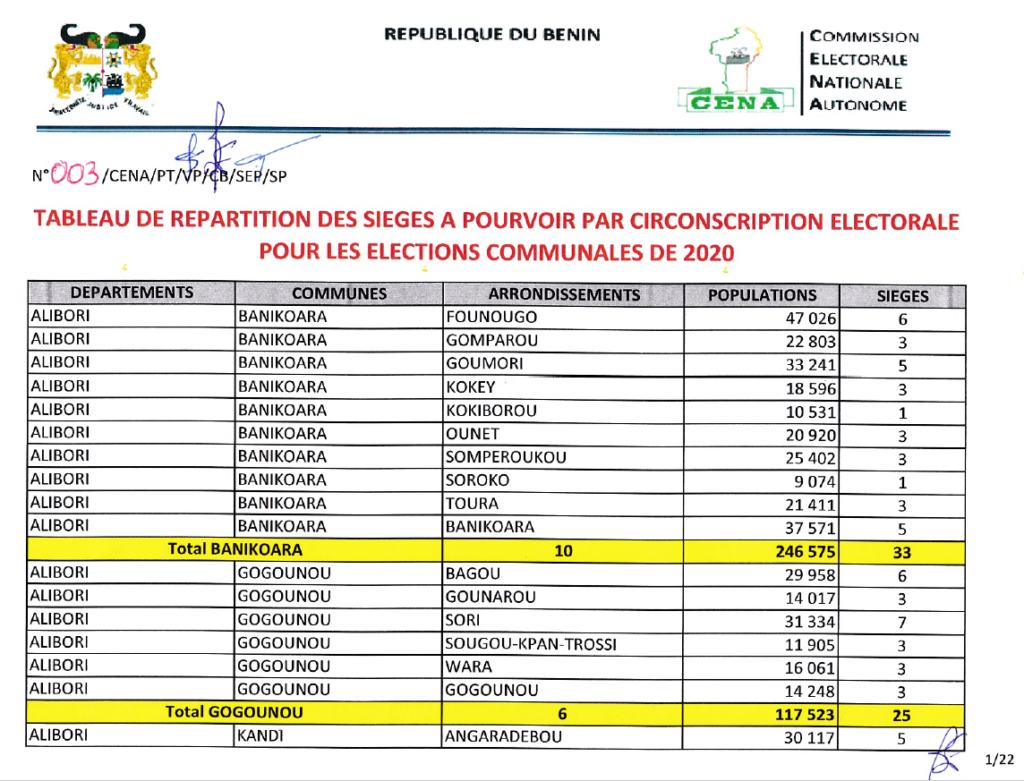 La commission électorale nationale autonome a mise à disposition la répartition des sièges par communes et municipalités…